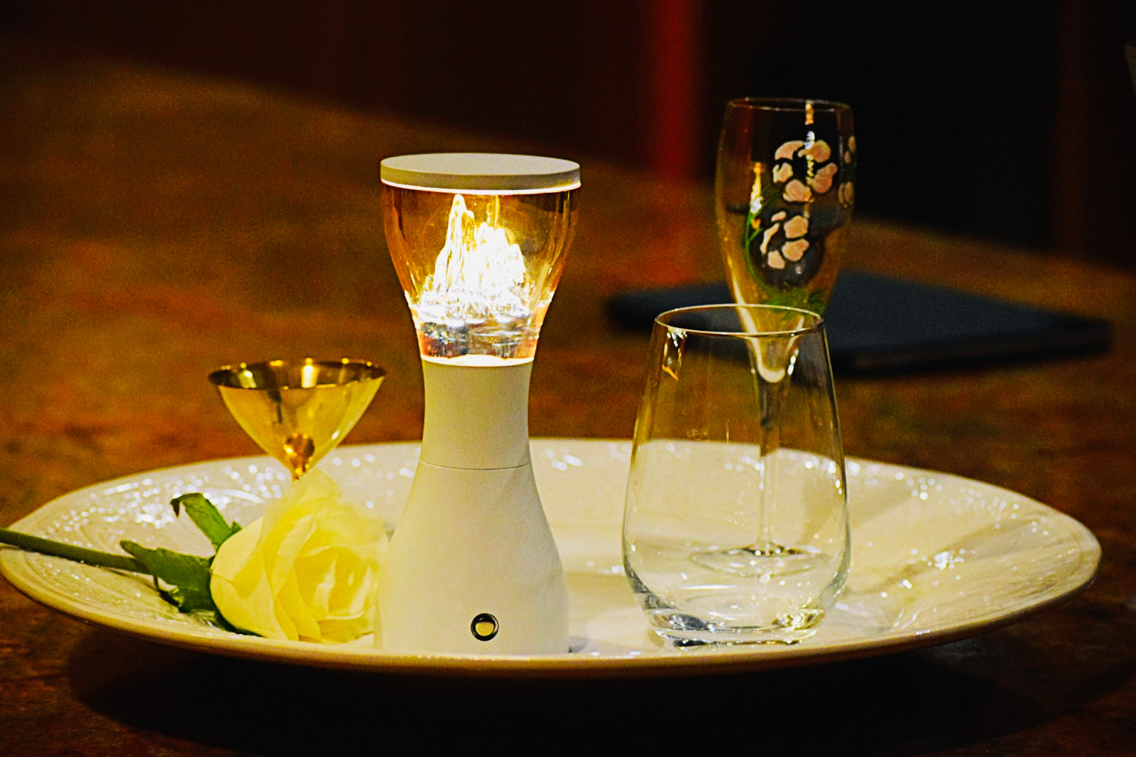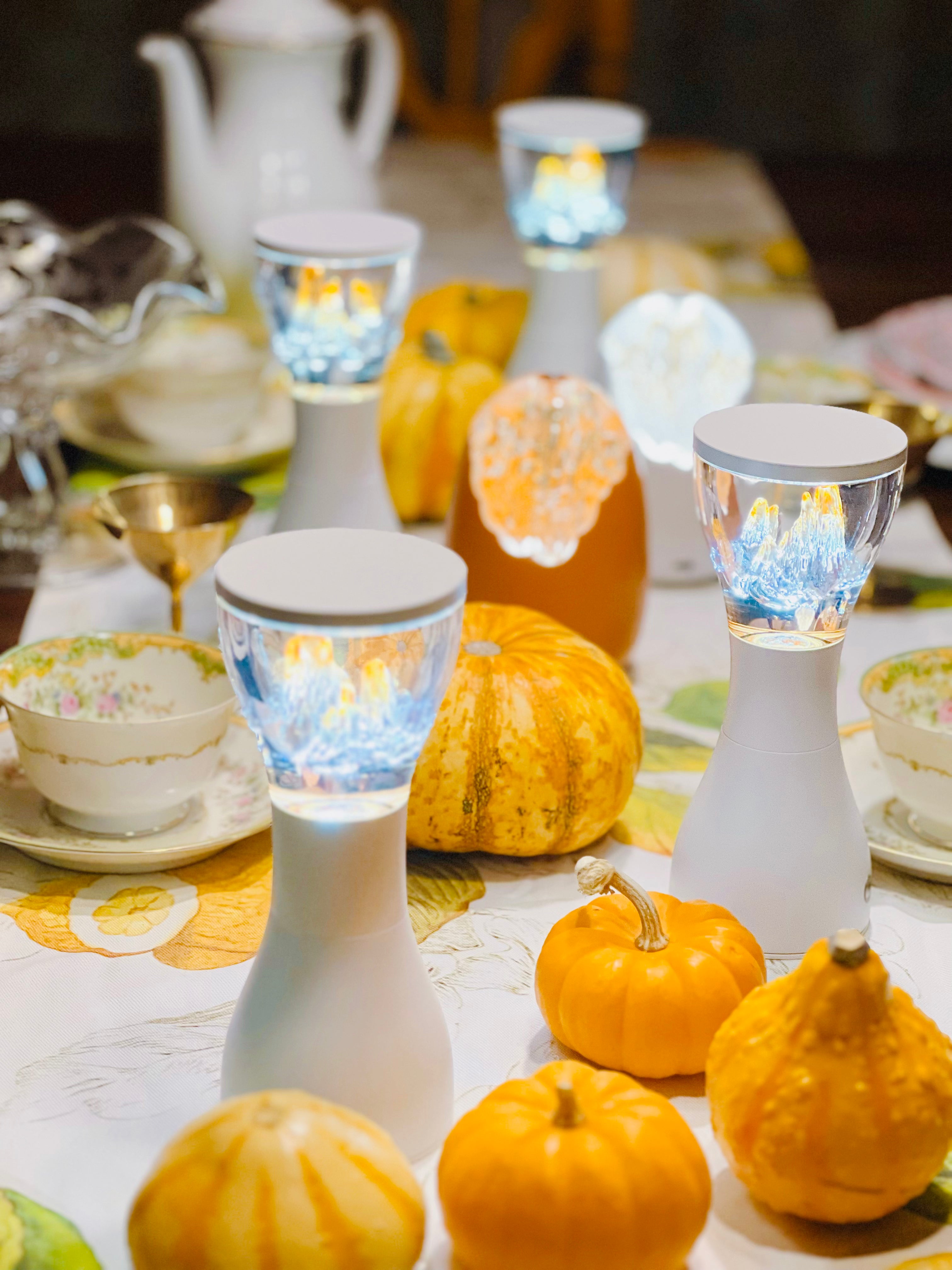The hourglass shape of the lamp creates a visual effect similar to a candle. The LED lights, designed as a mountain line, will produce a soft glow that resembles candlelight.